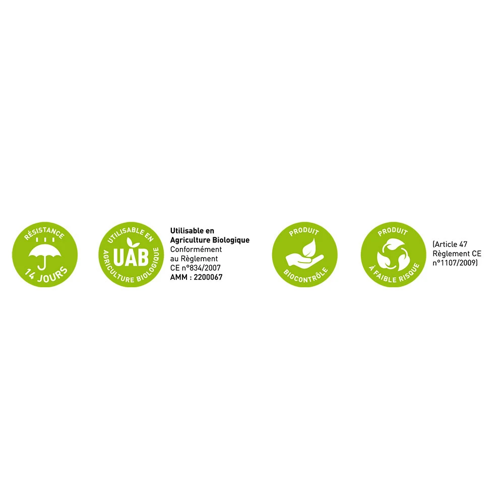 Anti-limaces et escargots plus portland est un appât sous forme de granulés prêt à l’emploi luttant contre les limaces et les escargots qui causent des dégâts au jardin et au potager. • les granulés gonflent, absorbent l’eau des sols humides et deviennent plus attrayants pour les limaces. • après avoir consommé les granulés, les limaces cessent de s’alimenter et se retirent dans leurs abris pour mourir, ne laissant aucune trace de bave. • grâce à sa haute concentration, le produit couvre au minimum 4 fois plus de surface qu’un produit classique. • formulation résistante à la pluie jusqu’à 14 jours. • à base de phosphate de fer, minéral naturellement présent dans le sol. • préserve les animaux domestiques et les hérissons. Technologie duratech ce procédé de fabrication est spécifique à portland et produit un granulé bleu vif, qui est facile à voir à la surface du sol, même au bout de 2 semaines. Il a une grande longévité, est résistant à la pluie et donne un granulé très appétent pour les limaces et les escargots. Mode d’emploi anti-limaces et escargots plus doit être appliqué dès les premiers signes de dommages faits aux plantes ou aux cultures, de préférence en fin de soirée ou tôt le matin, dans des conditions légèrement humides, lorsque les limaces sont les plus actives. L’application peut être répétée au minimum 1 semaine plus tard s’il ne reste aucun granulé de l’application précédente à la surface du sol. Répéter l’opération au maximum 4 fois si nécessaire. Épandre régulièrement autour des plantes et non sur les feuilles et sans faire de petits tas. Composition 29,6 g/kg phosphate ferrique dihydraté (cas-n°14567-75-0) utilisable en agriculture biologique conformément au règlement ce n°834/2007 amm : 2200068 disponible uniquement pour la france.