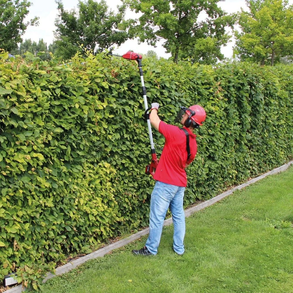Le taille-haie sans fil compact et facile à utiliser ge-hh 18/45 li t-solo de la marque einhell est un excellent outil de jardinage pour tailler ou façonner les haies ou les arbustes dans votre jardin ou sur vos parcelles. Sa lame mesure 450 mm de long et fonctionne à une vitesse de 1 700 tr / min. Le manche télescopique en aluminium peut être ajusté et fixé à l’infini à chaque hauteur. La poignée réglable supplémentaire peut être personnalisée pour l’utilisateur avec son verrouillage rapide et pratique. La tête motrice peut être inclinée 7 fois et le manche principal 4 fois pour les ajuster pour effectuer des coupes verticales et horizontales difficiles en hauteur de manière propre et précise. Le taille-haie est facile à transporter et à ranger en un instant dans un minimum d’espace. Remarque : ce produit est livré sans batterie ou chargeur. Les batteries et les chargeurs pour la gamme de produits power x-change sont disponibles séparément.