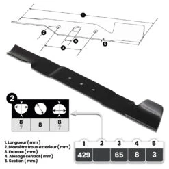 Lame High-lift 2,5 cm à Droite Compatible Tondeuses Autoportées Al-ko