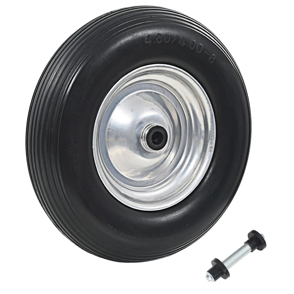 Fatigué de réparer les pneus crevés ? Alors notre roue de brouette increvable sera parfaite pour vous, car son pneu a été fabriqué à partir d’un matériau solide. Cette roue de brouette increvable est idéale pour une utilisation intensive lorsque vous transportez des charges avec votre brouette, chariot, diable, etc même sur des terrains irréguliers. Le pneu plein est fabriqué en élastomère pu durable et résistant à l’abrasion, et présente une conception de bande de roulement spéciale qui offre une adhérence accrue à grande vitesse. La jante est en métal robuste. La roue de rechange pour chariot a une taille universelle et peut être facilement installée sur votre brouette, chariot, diable, etc. La livraison inclut 1 roue et 1 axe.